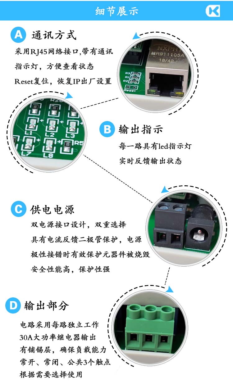 RJ45網絡RS485總線控制1/4/8/12路30A繼電器輸出模塊中文編程開關